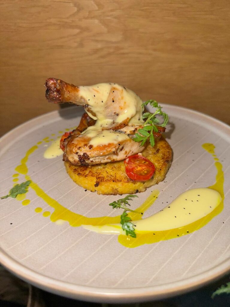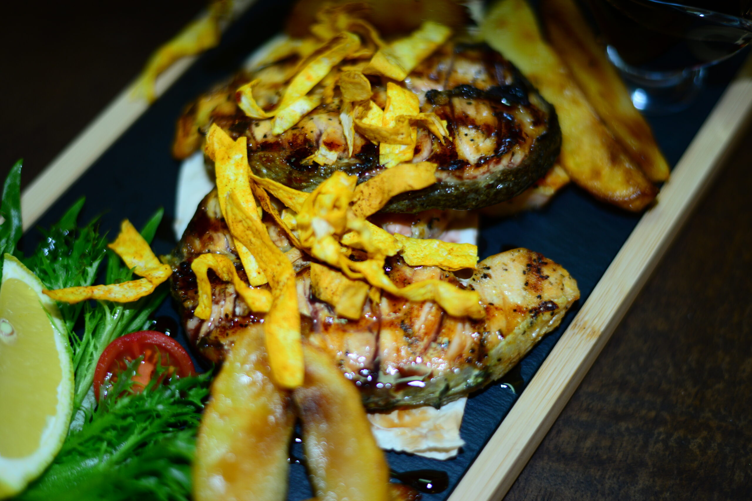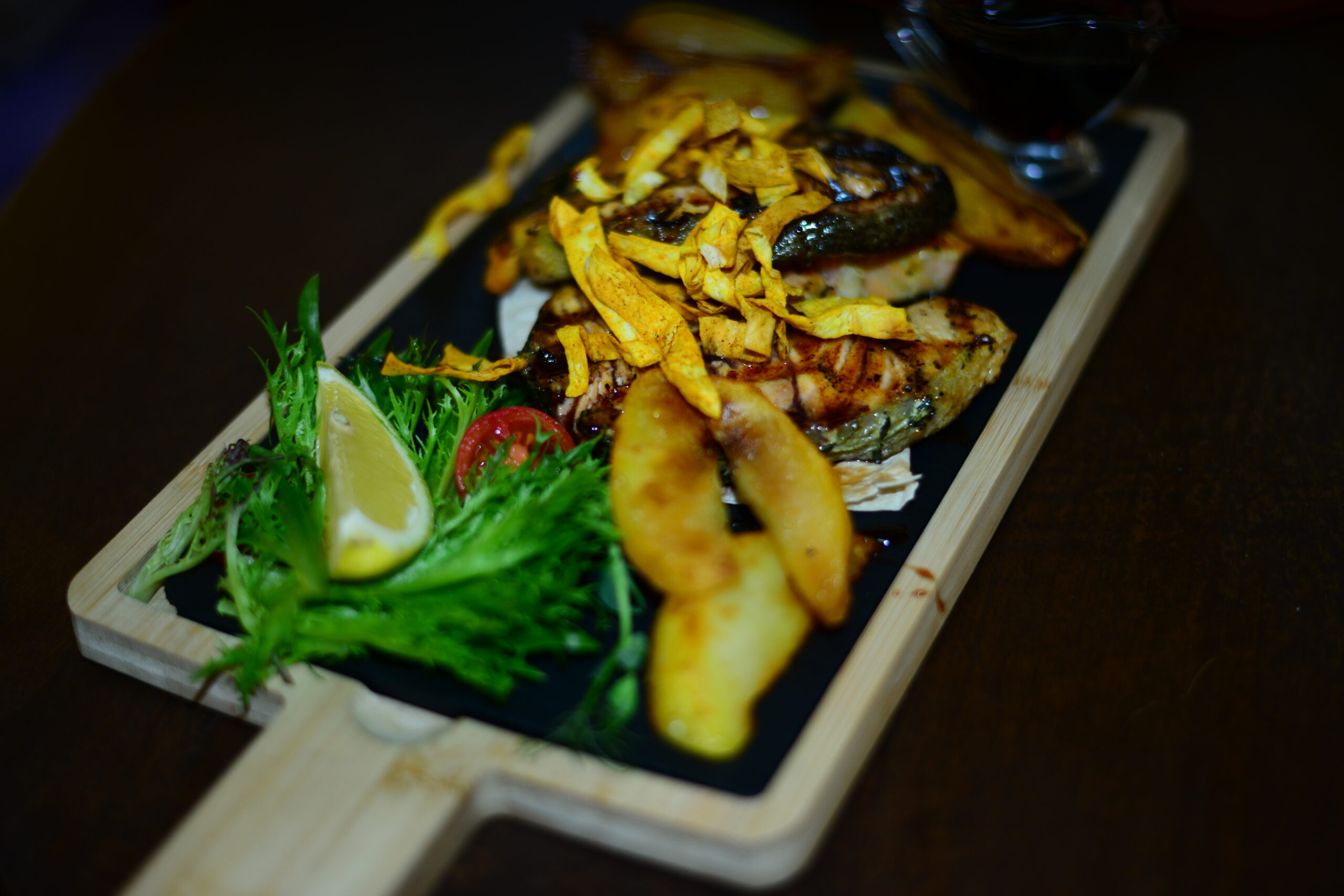 (телятина, запечёный картофель, вяленые помидоры, луковый мармелад) 400г