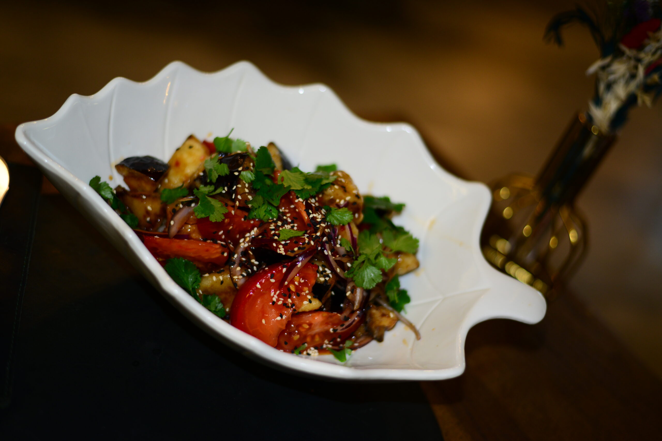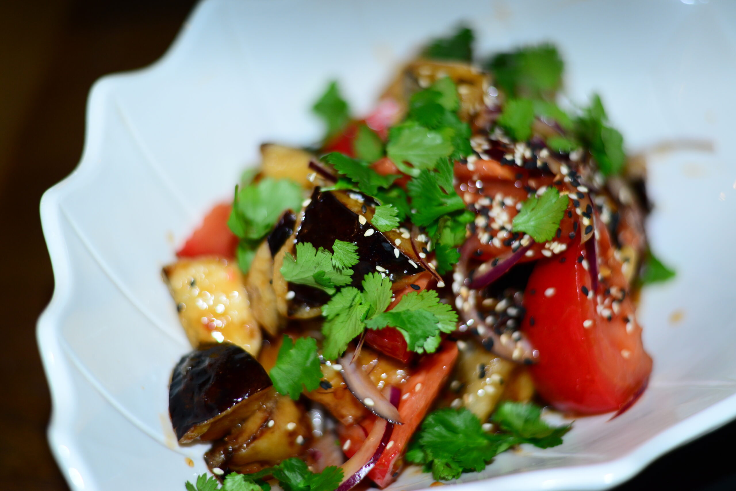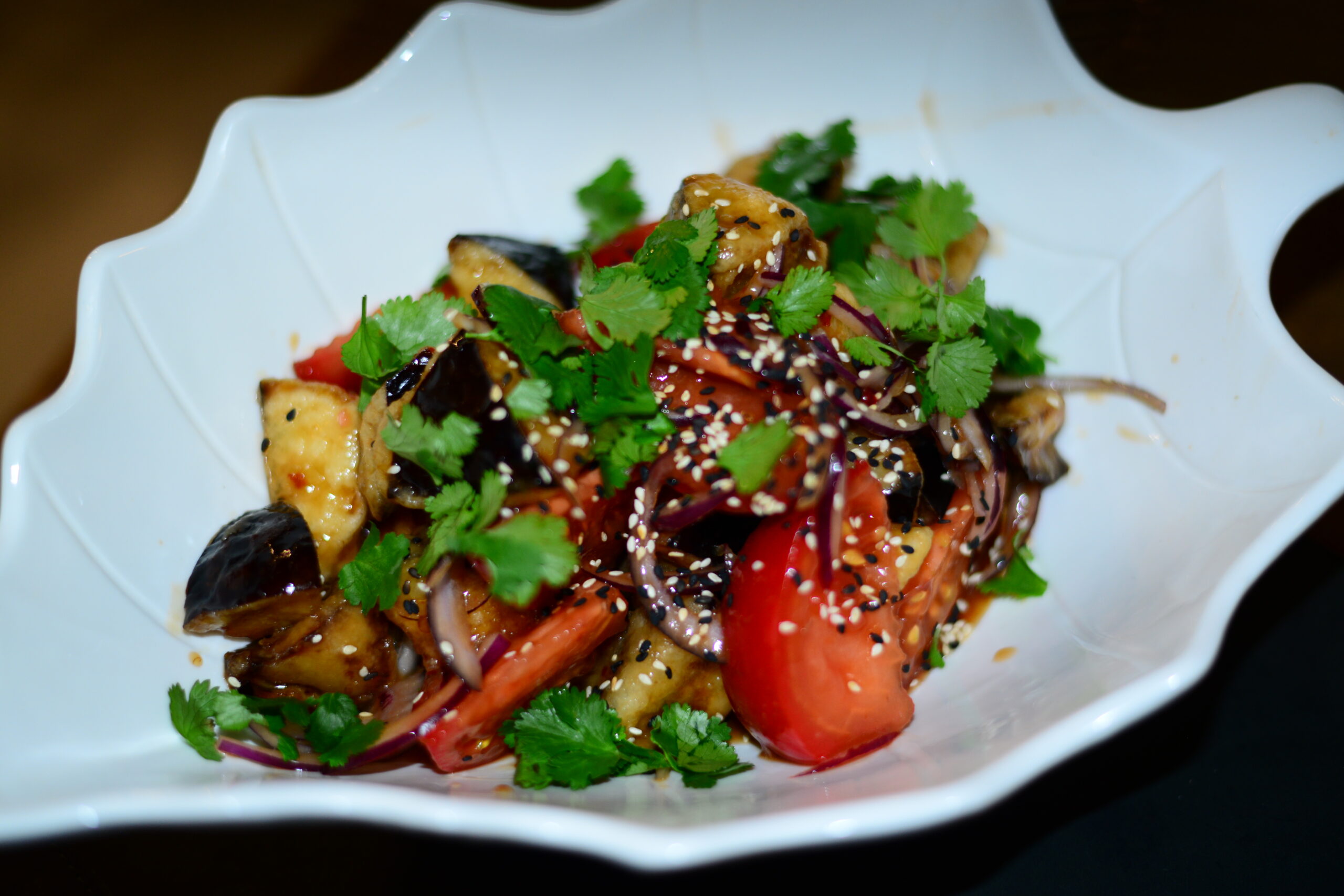 (баклажан, балгарский перец, помидоры Черри, творожный сыр, зелень, соус из свежих томатов) 350г